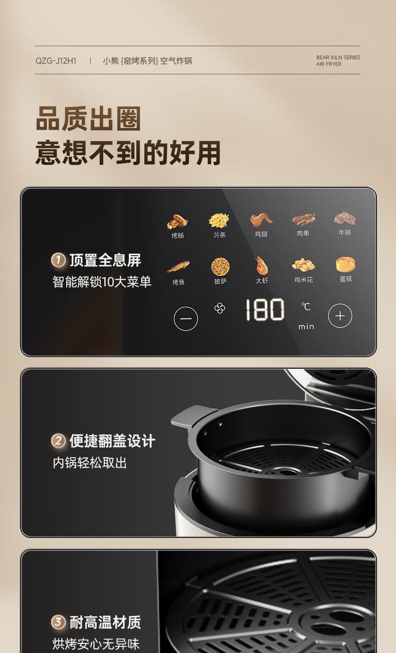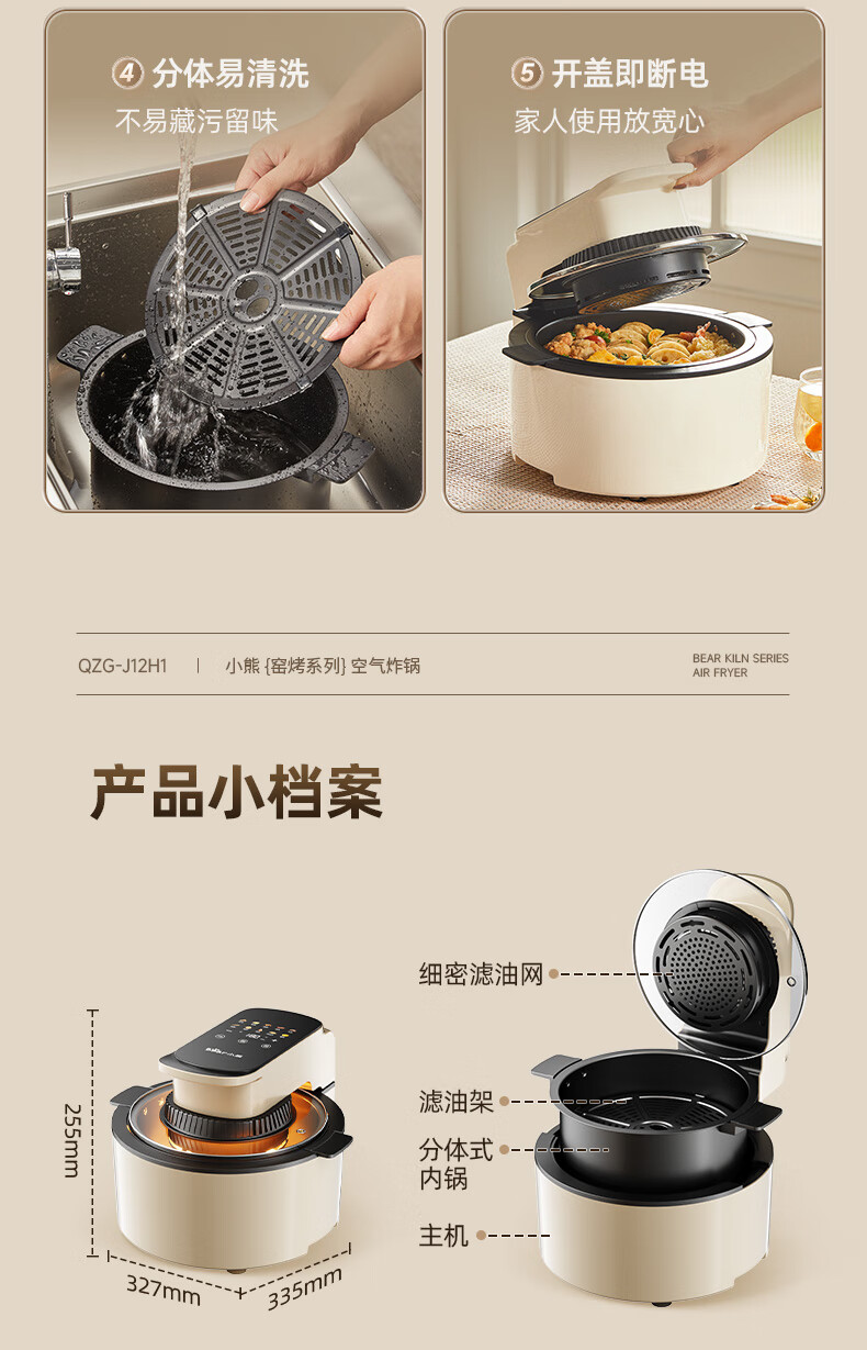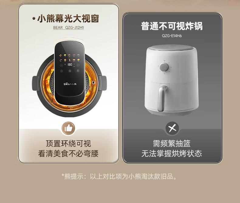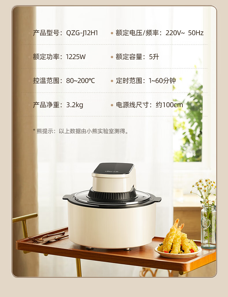 5L大容量; 可视大视窗; 大彩屏触控; 免翻面烤炸 涡轮聚风环; 升级远红外光波管热力透芯 焦香扑鼻。