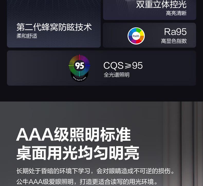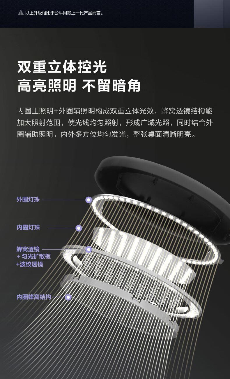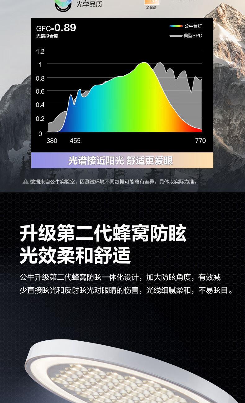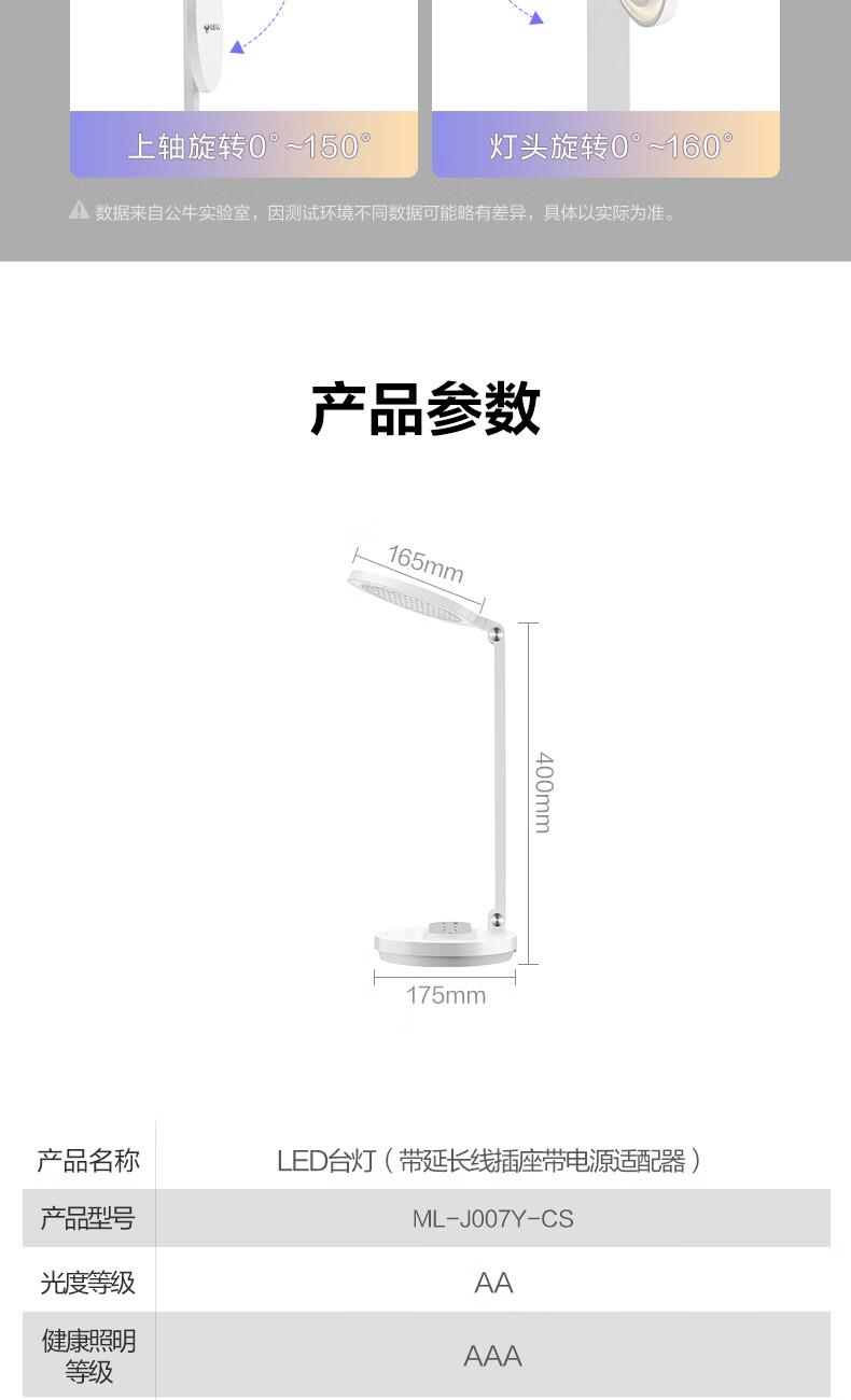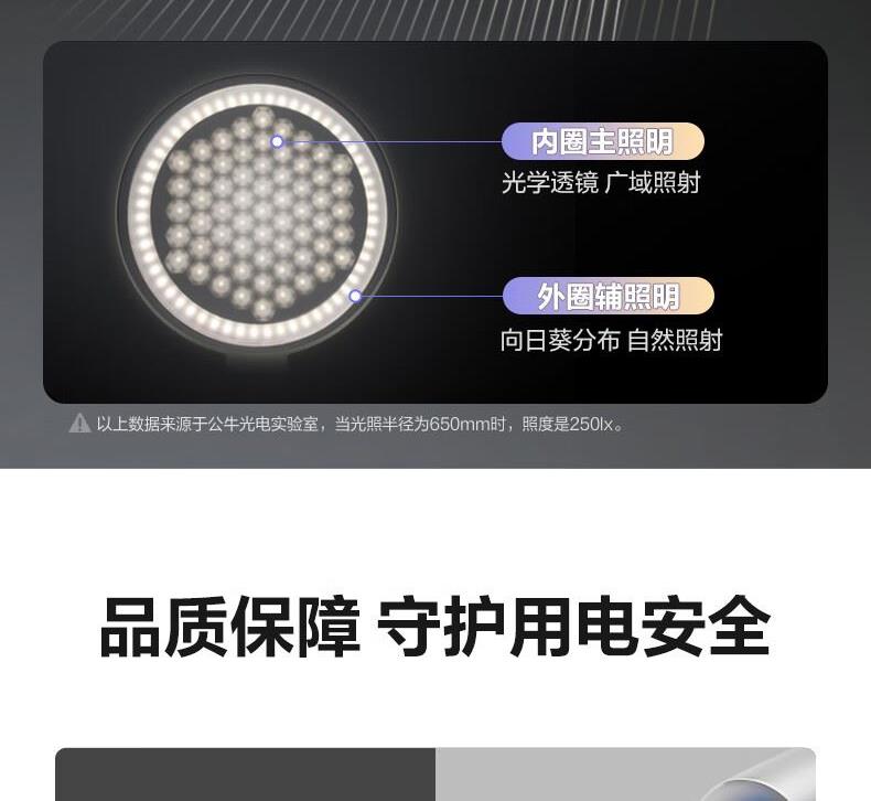 参数: 插座额定电压:250V~ 输出口:USB多口/USB-A单口/Type-C单口输出 材质:ABS、PC LED灯色温:主灯4000K、夜灯3000K 规      格 : 12只/箱 产品尺寸:400x175x267mm 卖点: 【67W快充】USB-C口支持单口输出PD 67W; 【防蓝光、无可视频闪】呵护明亮双眸,防蓝光危害,呵护双眼,减轻用眼疲劳度; 【蜂窝透镜】升级第二代蜂窝防眩一体化设计,加大防眩角度,有效减少直接眩光和反射眩光对眼睛的伤害,光线细腻柔和,不易眩目; 【高品质转轴】双转轴结构,上轴可0°-150°翻转,下轴可0°-90°翻转,自定义用光偏好,轻松折叠收纳,不占桌面空间; 【无极调光】亮度自定义,调节尽在指尖,舒适用光更爱眼