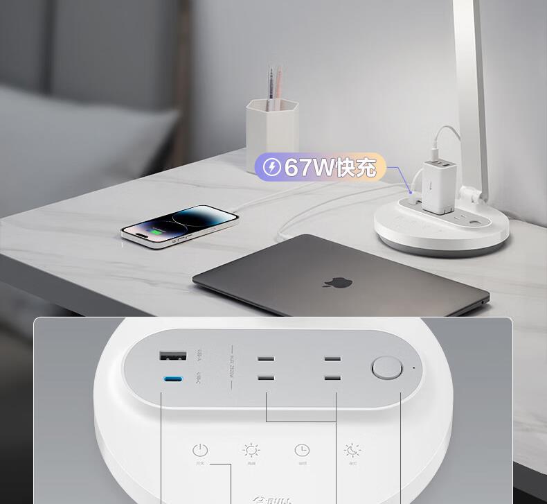 公牛星阅插座台灯67W快充ML-J007Y-CS